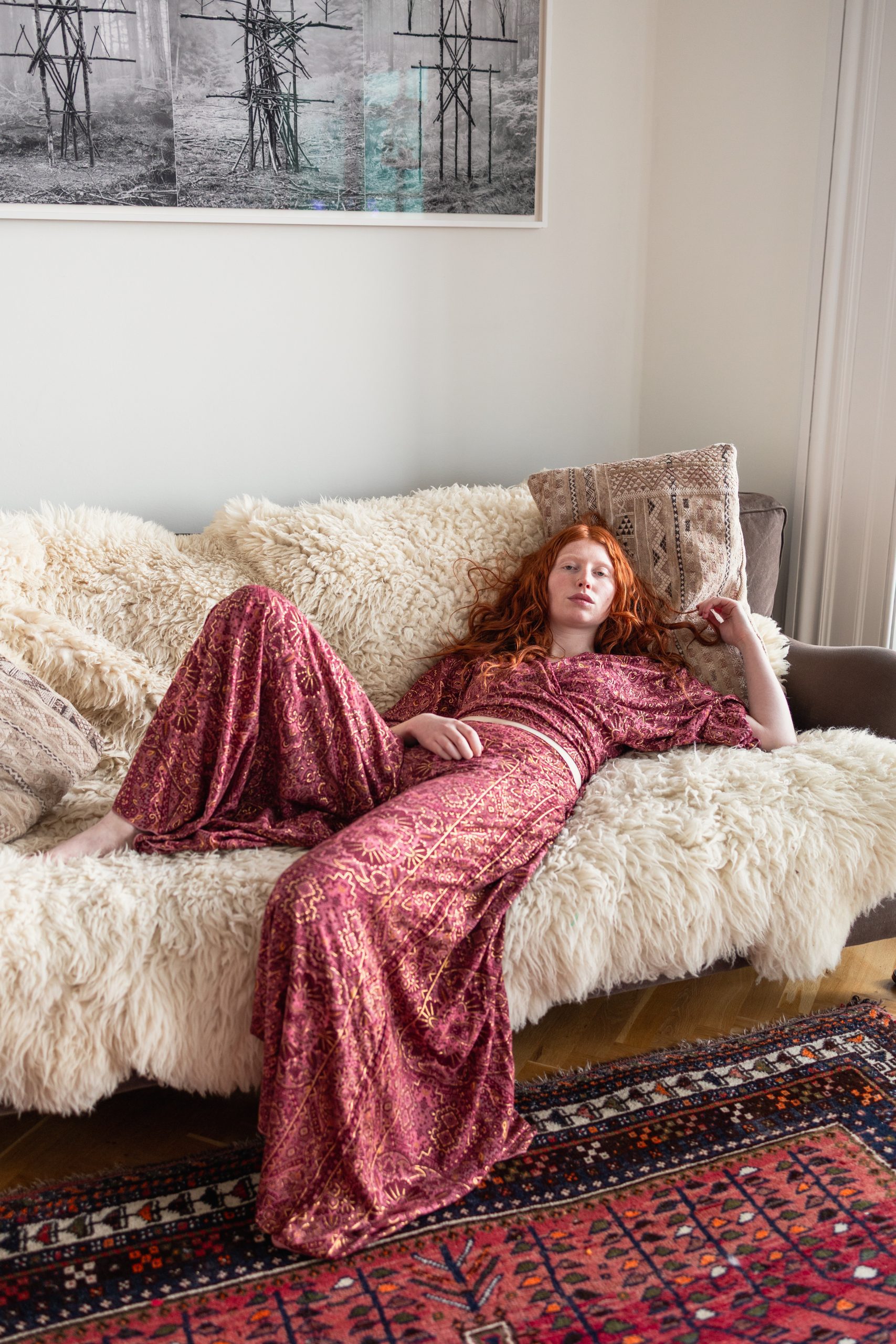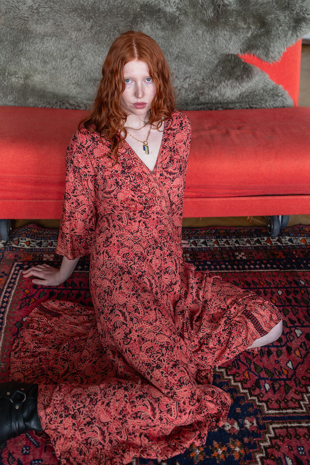 This stunning fabric is a viscose–modal blend, a natural fibre derived from plant cellulose.