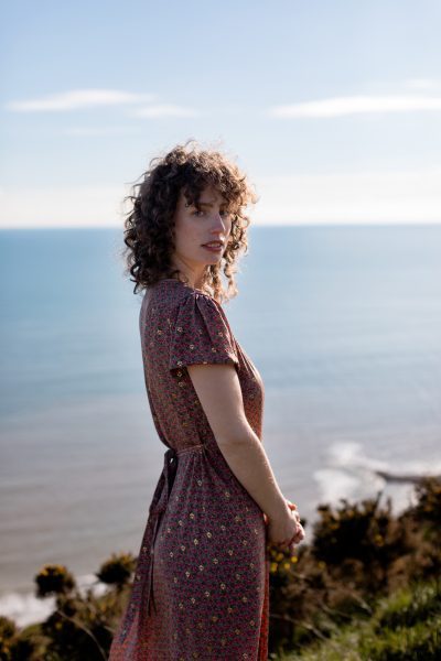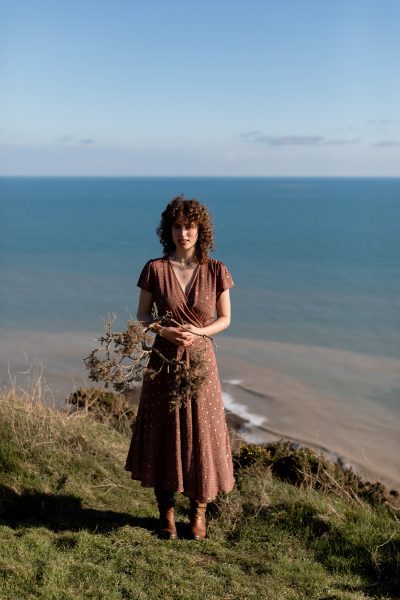 Beautifully cut three-quarter length wrap dress with a straight cut hem, a generous wrap skirt and simple short sleeves. We love the drape and feel of this fabric!