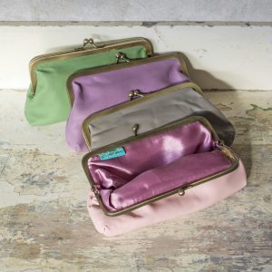 Soft leather clutch bag in this season’s pastel colours, with clip opening. Satin lined. One size: W:20cm x H:13cm