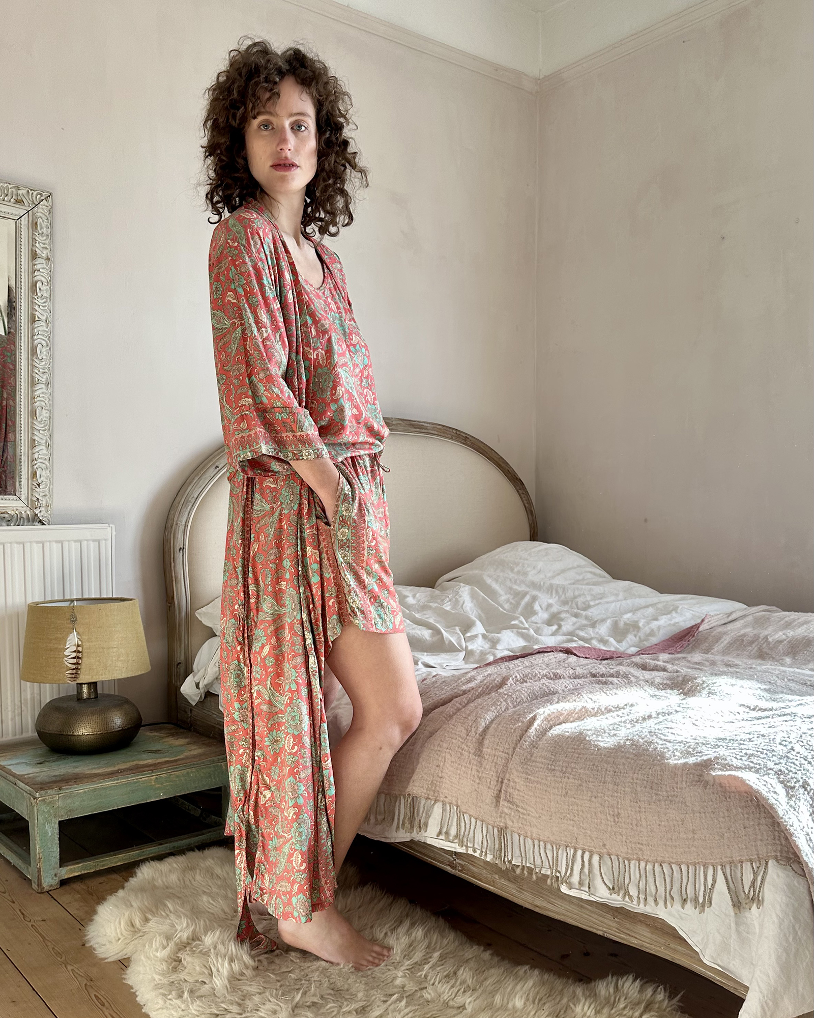 Top Length 61cm. Shorts length 40cm. Machine wash on delicate at 30 degrees. Fabric: 100% viscose modal. In sizes: S/M (8-12) & M/L (12-16).