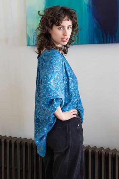 This stunning fabric is viscose–modal, a natural fibre derived from plant cellulose.It features the same vibrant colours as our other fabrics, but with an even softer, more fluid feel —beautifully breathable, natural, and a joy to wear. We love it!