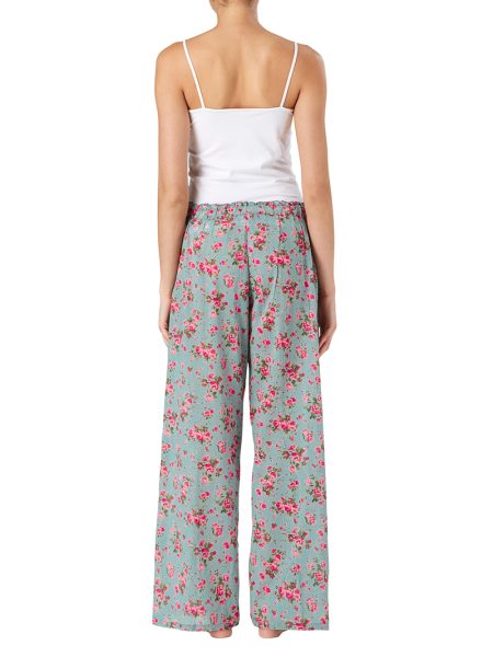 Loose and easy pyjama bottoms, in Rambling Rose print, with a part elastic, part drawstring waist, with frill detail.