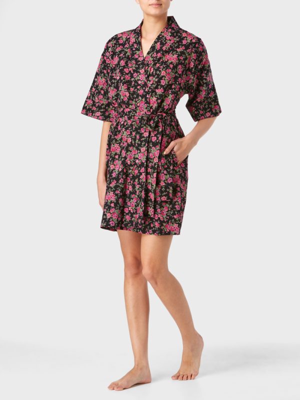 A gorgeous shorter length version of our bestselling kimono style dressing gown. Made in our soft floral printed cotton voile with drop shoulders, 2 hidden side pockets and a tie belt at the waist.