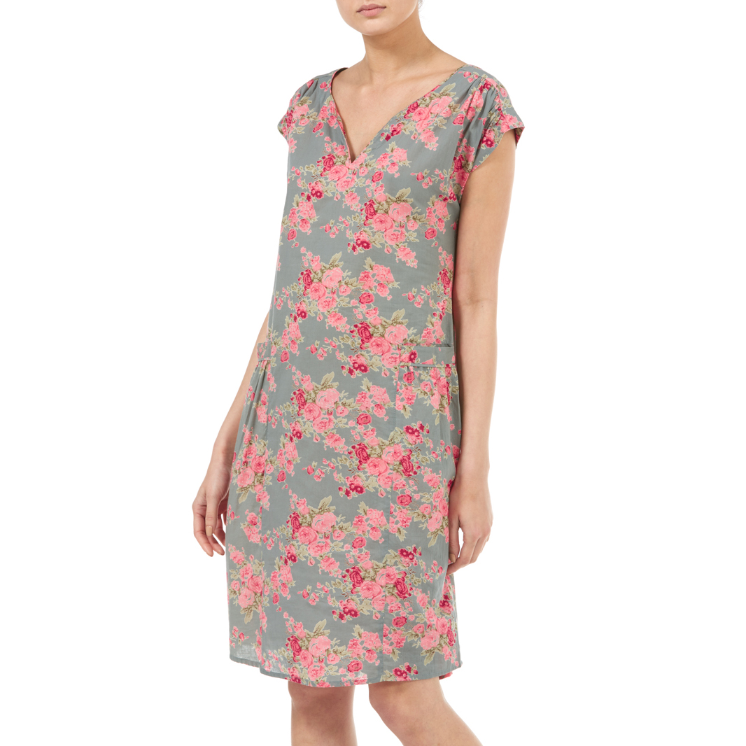 This pretty cotton day dress features cap sleeves, two front pockets and a cut-out at the neck and comes with a white cotton camisole slip to wear underneath