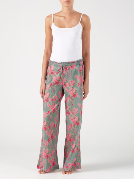 Loose and easy pyjama bottoms, in Vintage Rose print, with a part elastic, part drawstring waist, with frill detail.